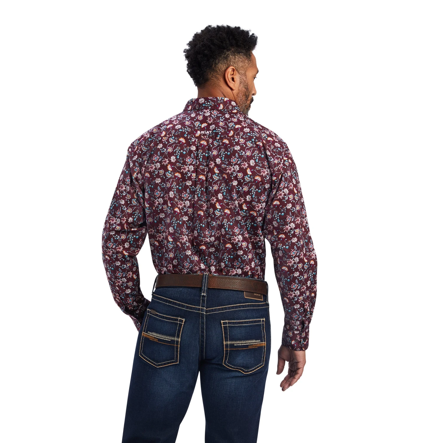 Claret Floral Print Long Sleeve Flannery Classic Fit Button Down Shirt.
