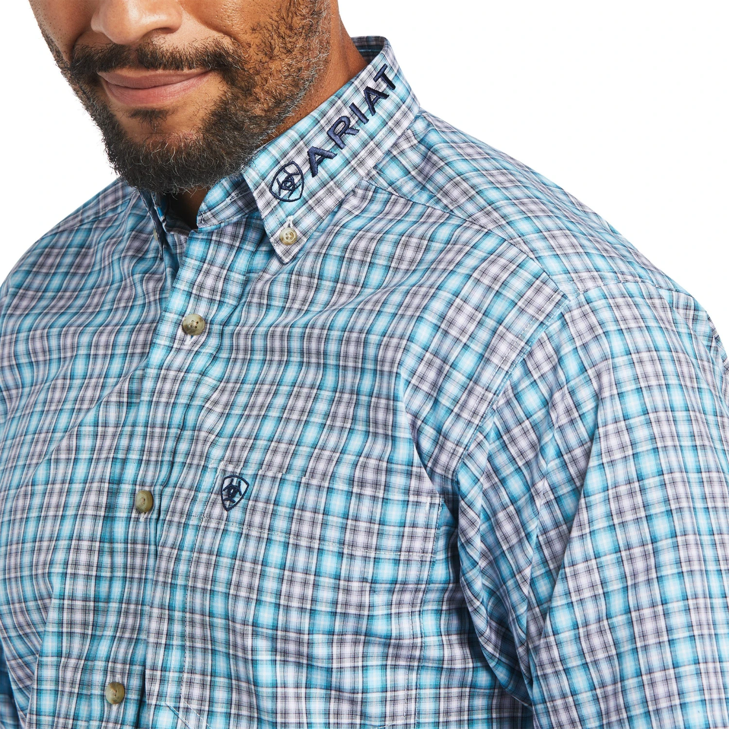 White and Blue Plaid Long Sleeve Pro Series Team Shay Fitted Button Down Shirt.