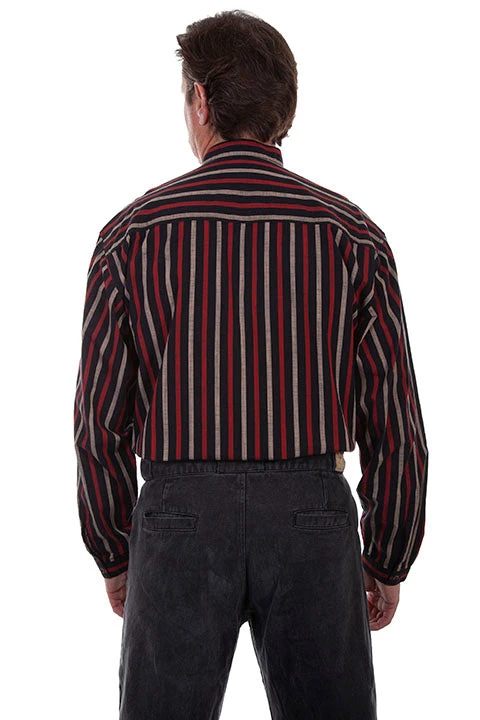 Black with Bold Stripes Long Sleeve Button Down Shirt.