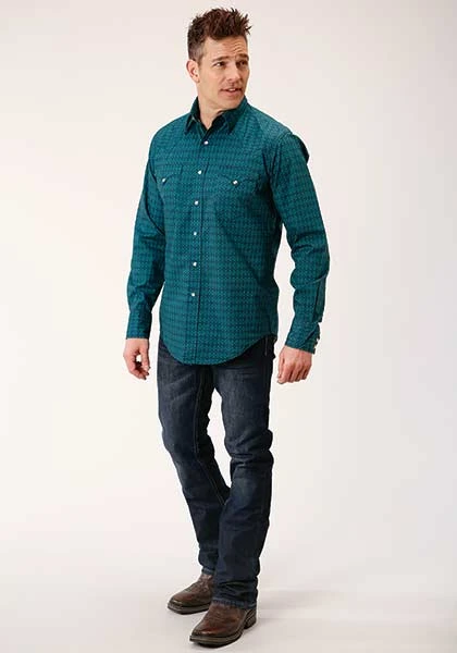 Roper Men’s Green & Blue Diamond Pattern Snap Long Sleeve